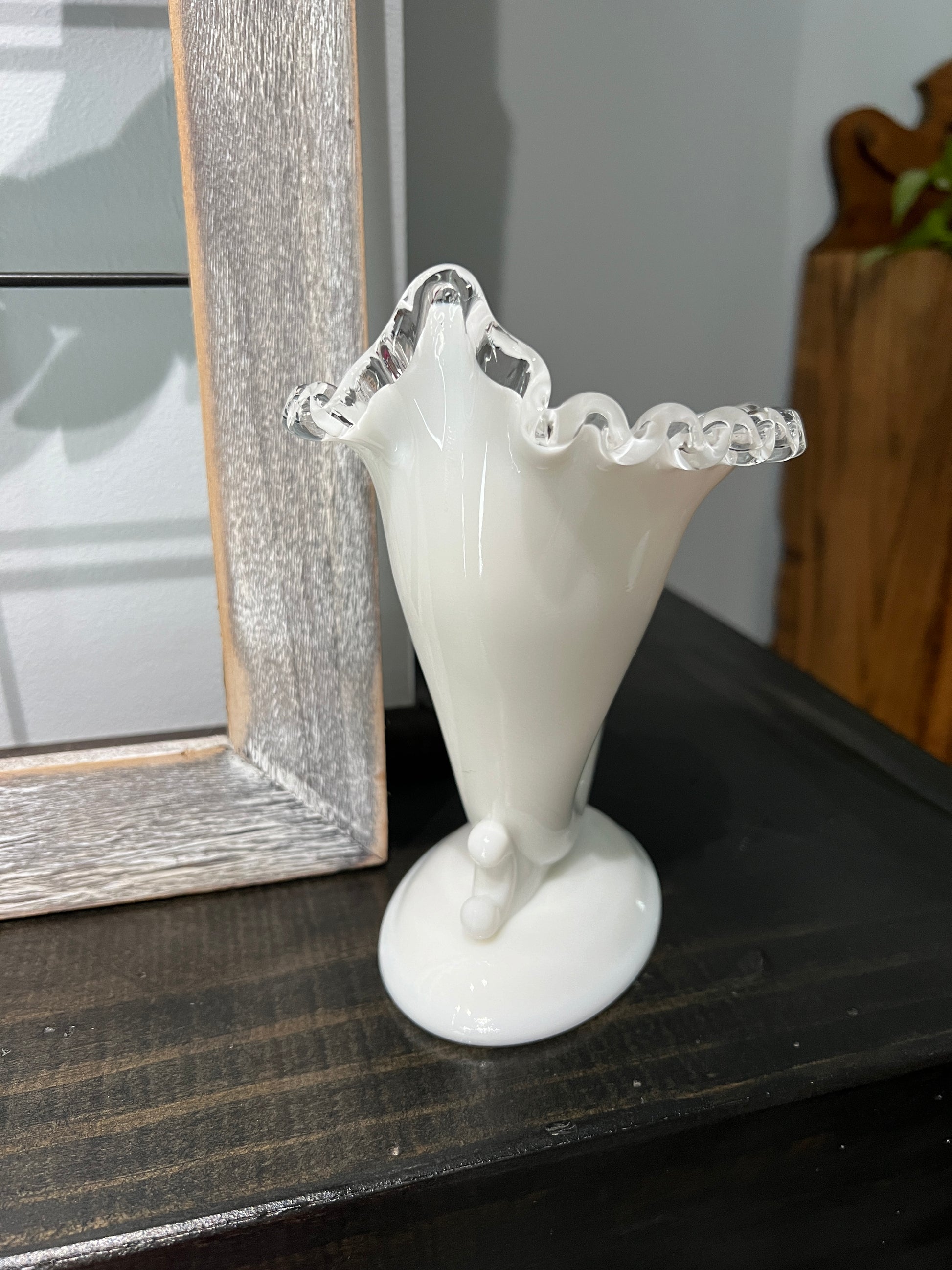 The beloved Silver Crest by Fenton - Cornucopia vase. Stands 7" tall. This design is a personal fave. Excellent condition.