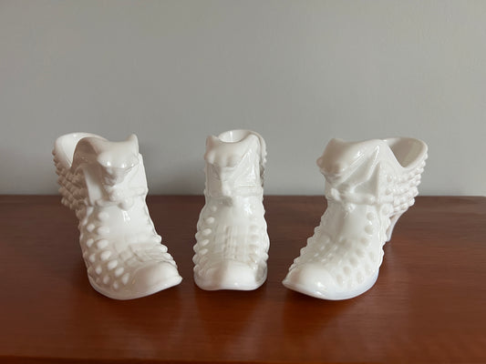 Fenton Daisy/Button Cat Milk Glass Slipper